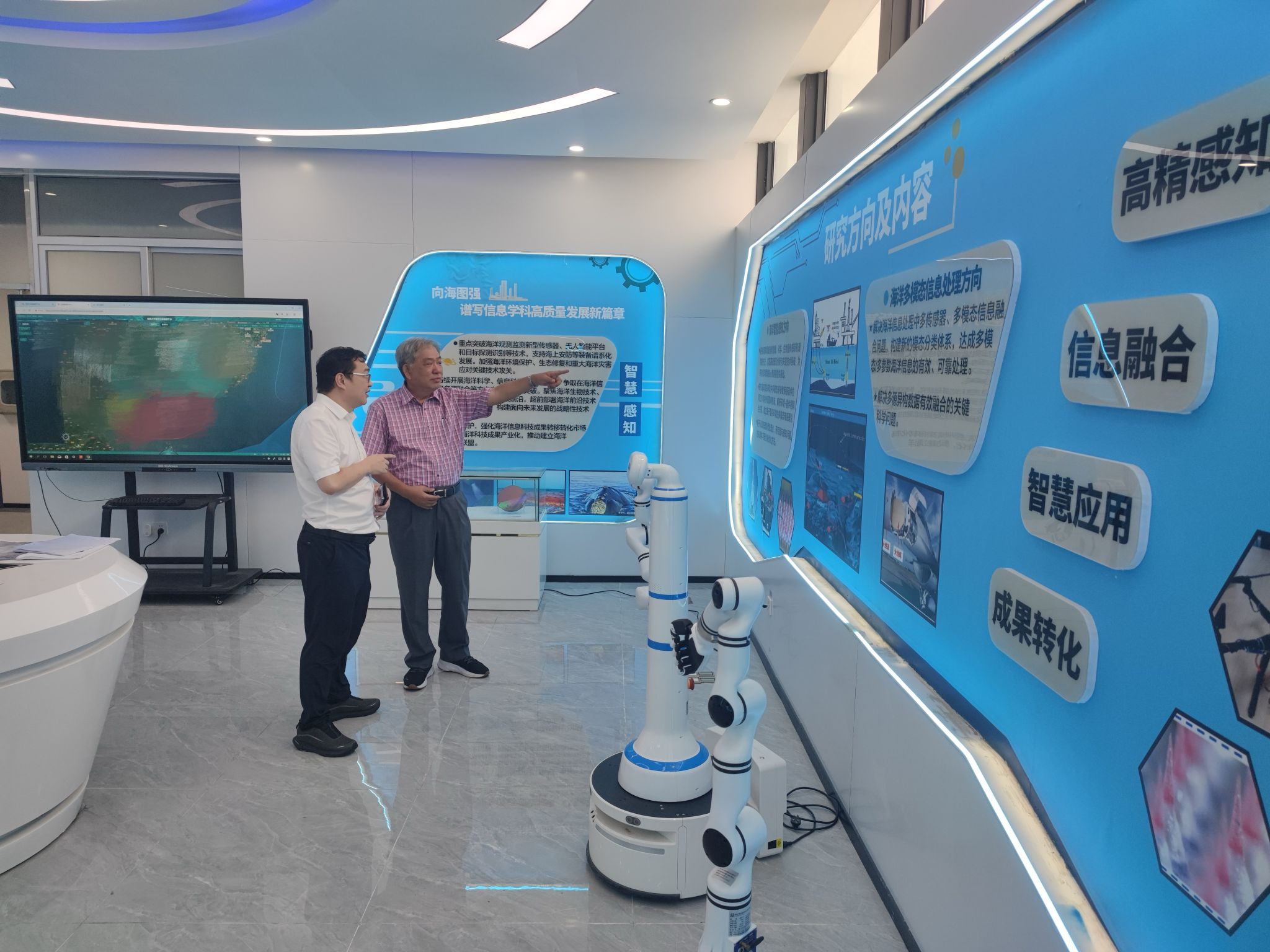 座谈会上,院长刘璟教授围绕学院发展、人才培养、重大科研项目等关键方面,向胡先生作了详细且全面的介绍。随后,胡东南先生在学院领导陪同下,参观了福建省海洋信息感知与处理重点实验室,深入了解学院在科研创新方面的成果与进展。