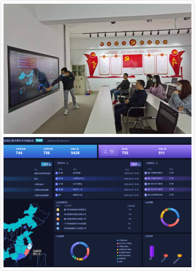 学院领导高度重视毕业生就业工作,同辅导员实时关注线上招聘会,指导毕业生线上应聘。同时,学院坚持提供“多渠道就业、高契合岗位”,采用双选会、宣讲会、公众号、班级社群等线上+线下方式,动态服务毕业生;做好毕业生就业意愿与能力的评估,精准化帮扶就业困难学生,形成辅导员、任课教师、优秀校友等多层次的就业帮扶体系。基于智能平台和数据化管理的便捷性,学院也将更有针对性的开展下一步就业工作。