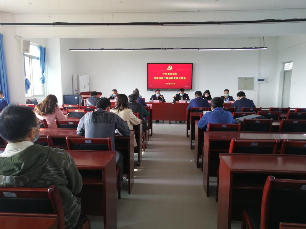 4月9日下午,校党委巡察组巡察信息工程学院党委反馈会在克立楼308会议室召开。校党委常委、纪委书记、巡察工作领导小组副组长童建福,巡察组组长邱键辉,副组长郭银清、陈娟,学院领导班子成员、全体学院中层干部出席了本次会议。