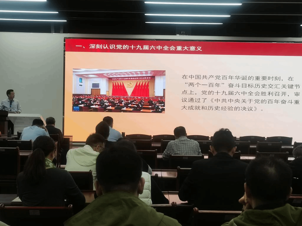 学院党委书记陈志鸿作题为《党的十九届六中全会的核心内容分析》的讲解,强调要认真学习和深入领会“中国共产党百年奋斗的重大成就和历史经验”、“‘两个确立’对推进中华民族伟大复兴历史进程具有决定性意义”、“中国共产党是什么、要干什么这个根本问题”三个核心内容,贯彻好全会精神。他要求全院师生一是从党的百年奋斗的伟大成就和历史经验中启迪智慧、坚定信念;二是以办好人民满意的教育的高度自觉,着力推进博士点立项建设和内涵发展;三是着力加强人才培养,努力培养堪当民族复兴大任、全面发展的社会主义建设者和接班人。