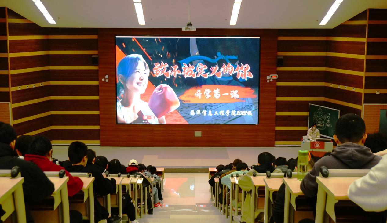 为深入学习贯彻习近平新时代中国特色社会主义思想,进一步加强广大青年学生思想政治引领,3月10日晚,海洋信息工程学院党委副书记王华建以“致不被定义的你”为主题,为学生讲授开学第一课,专任教师许伟坚副教授、辅导员以及2022级全体学生参加。