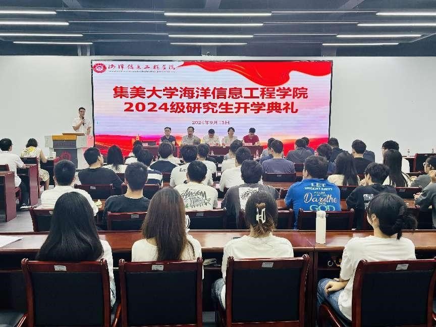 9月13日上午,海洋信息工程学院2024级研究生开学典礼隆重举行。院党委书记郑文发、院长刘璟、副院长陈彭、副院长陈妤姗、副院长丁同禹、研究生导师以及2024级研究生全体新生共同参加,院党委副书记王华建主持。