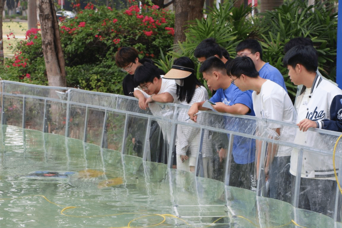 11月13日,厦门海沧中学近90名师生观看了集美大学海洋信息工程学院学生水下机器人作业演示。