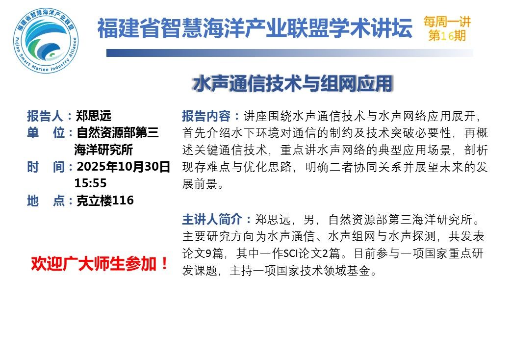 智慧海洋联盟讲坛第16期:水声通信技术与组网应用